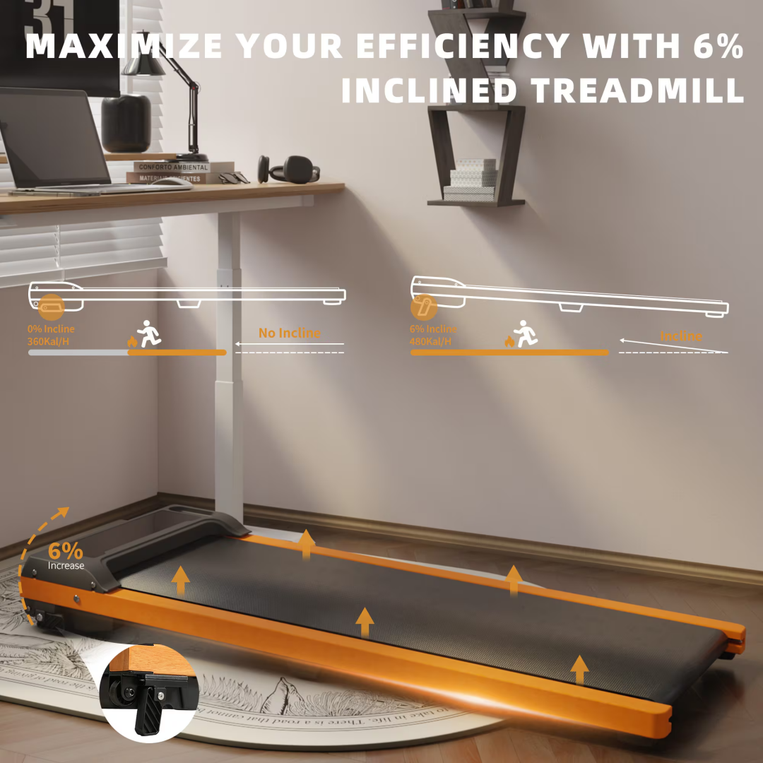 ✅  6% Incline Adjustment for Enhanced Fat Burning  – Designed with two adjustable incline levels, this walking pad allows you to simulate uphill walking, increasing workout intensity and calorie burn. Whether you're looking to challenge yourself or simply add variety to your routine, this feature makes it easier to achieve your fitness goals from the comfort of your home.