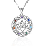 Sterling Silver Chakra Necklace Celtic knot Yoga Lotus Pendant Necklace Gifts for Women Mom