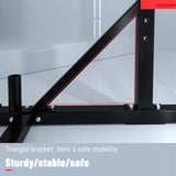 - 【Adjustable dumbbell stand】: This squat rack includes a double-layer barbell load-bearing stand, 14 height adjustment methods, the upper barbell rack is 16cm/7in long, the lower barbell rack is 30cm/12in long, the load-bearing capacity is 550LBS, and the length is more than 1m 8 Barbell, so you can rest assured to exercise.