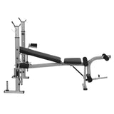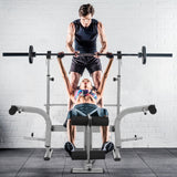 - Powerful 2-in-1 rack and bench set for barbells and dumbbells, curl weightlifting exercises and sit-up benches