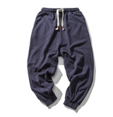 Drop crotch, Drawstring Closure, Solid Color, Adjustable Waist Cord, Two Slant Pocket, narrow ribbed hem ankle design.