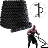 Exercise Training Battle Rope for Home Gym with Anchor Strap Kit Black