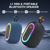 - 【IPX7 Waterproof Wireless Speaker】 L1-Black waterproof Bluetooth speaker is splashproof, rainproof and light sprayproof. Perfect for walking, hiking, camping. Become a rock musician on your journey. (Note: Please do not soak the machine in water)